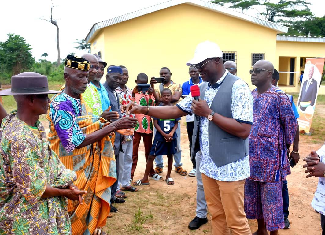 ๐๐ฒ ๐ฃ๐ฟ๐ฒฬ๐๐ถ๐ฑ๐ฒ๐ป๐ ๐ง๐ฟ๐ฎ๐ผ๐ฟ๐ฒฬ ๐๐ฑ๐ฎ๐บ ๐๐ผ๐น๐ถ๐ฎ, remet officiellement au population de Komenan-Yaokro et Andoh-Kouamรฉkro(dรฉpartement de Daoukro),les clรฉs d’un logement social pour enseignant et une pompe hydraulique ร motricitรฉ humaine.
